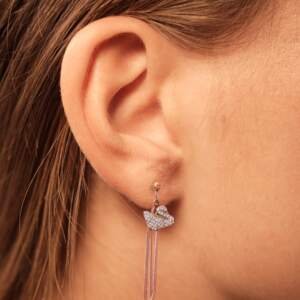 Graceful Swan Crystal Drop Earrings with Rose Gold Chains