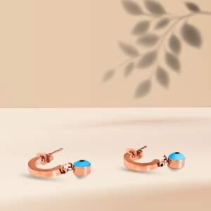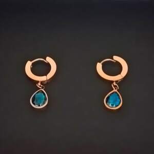Rose Gold Hoop Earrings with Elegant Blue Teardrop Charms
