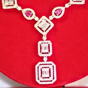 An exquisite geometric-inspired necklace set featuring zirconia...