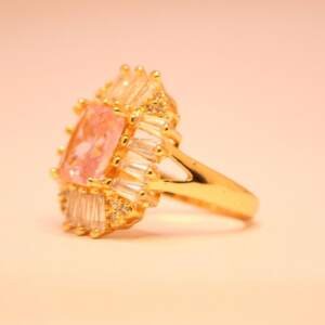 Blush Elegance Ring with Radiant Pink Center and Baguette Halo