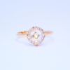 - Stunning cushion-cut centerpiece with a halo of accent stones