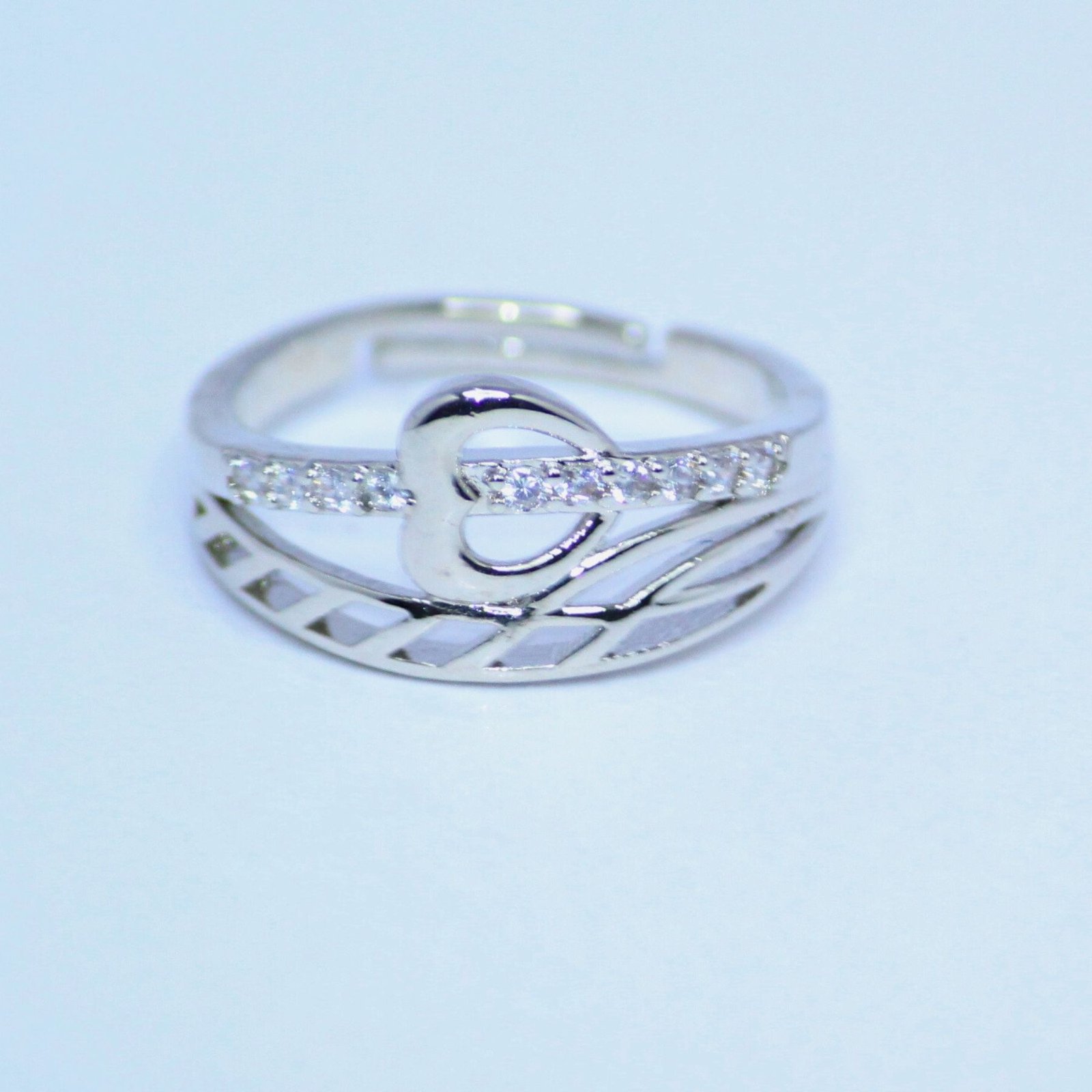 Celebrate love and elegance with the Eternal Embrace Silver Heart Ring. This intricately designed ring features a graceful heart motif intertwined with shimmering accents, symbolizing an unbreakable bond. Crafted from premium silver, its delicate yet modern structure enhances any look, making it a perfect choice for both daily wear and special occasions. Whether gifted to a loved one or worn as a personal statement, this ring is a timeless expression of affection and style.